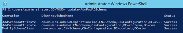Each machine (that needs to rotate passwords) has to be able to update the newly introduced attributes (ms-Mcs-AdmPwd and ms-Mcs-AdmPwdExpirationTime) in the schema. In order to achieve that we need to allow machines to update those entries. This is done via the a PowerShell command Set-AdmPwdComputerSelfPermission in the AdmPwd.PS Module